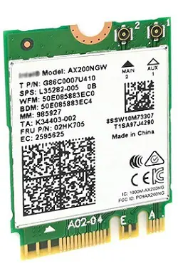 Particulièrement en ce qui concerne cette carte, il s’agit d’une carte sans fil WiFi 6 AX200NGW M2 qui fonctionne donc sur les normes sans fil 802.11ax. Cela dit, elle est presque 3 fois meilleure que n’importe quelle carte Wi-Fi conventionnelle. Dans ce cas, cette carte peut fournir des vitesses sans fil allant jusqu’à 2402Mbps à partir de la bande 5GHz et environ 574Mbps à partir de la bande 2.4GHz. Ainsi, si vous utilisez un routeur double bande, cette carte ne vous décevra pas du tout. En dehors de cela, elle utilise une clé NGFF M2 2230 et n’est compatible qu’avec des systèmes fonctionnant sous Windows 10.
